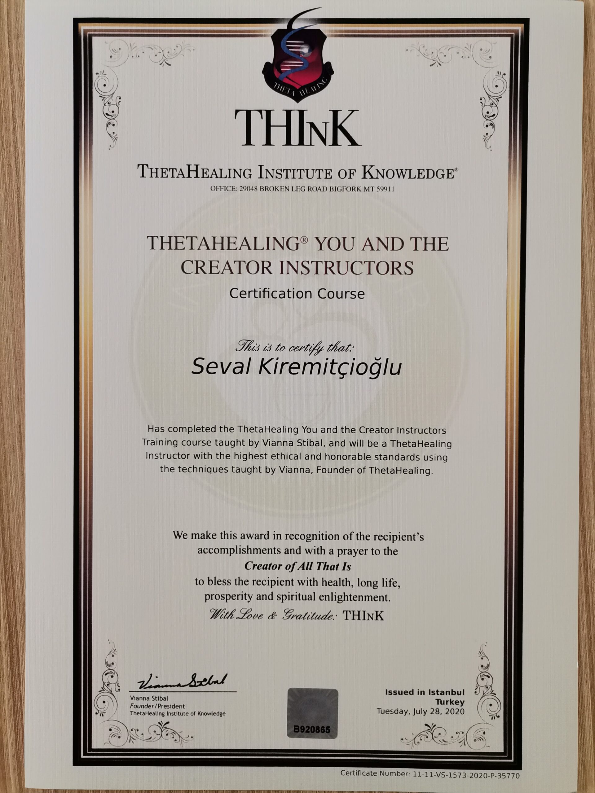 Bu yolculuktaki deneyimlerim ile birçok farkındalık kazanmıştım evet hep bir spiritüel tarafım vardı ama asıl uyanış yolculuğum oğlum Yaman Ata’mın doğumuyla başladı diyebilirim. O ana kadar kitaplar, Atölyeler derken Nefes ile karşılaştım , sonra çeşitli kamplar ve kendi hayatımı dönüştürmekle ilgili birçok farklı kişiden seans ile destek aldım. Her çalışma bana bir fayda sağladı ve Kuantum, Nlp, Zihin kontrolü gibi biilinçaltı teknikleri ile ilgili eğitimler alarak evet bayağı yol katetmiştim ama , hayatımda bazı alanlarda ilerleyemememin nedenlerini sorgularken 2018 yılında THETAHEALİNG iile karşılaştım. Çok kısa sürede hayatımdaki dönüşümlerin heyecanıyla eğitimlere katıldım ve önce kendi üzerimde çalışmalar gerçekleştirdim. Buradaki deneyimlerimi ve bu tekniği daha fazla kişiye aktarabilmek adına Eğitmen olmaya karar verdim.2020- Temmuz ayında bu tekniğin yaratıcısı Vianna Stibal ilkez Türkiye’de verdiği 21 günlük eğitime katılarak ( 6 modülde ) tamamladım